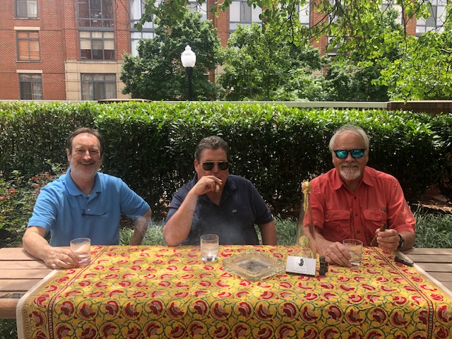 Summer is rum season, so I’m recommending another rum. A recommendation for a good sipping rum came to me from our publisher, Bob Tagert. As Bob was convincing me to try the rum, which didn’t take long, the discussion moved to which cigar may pair well with it. This then led us to consulting John Pann, partner/manager of John Crouch Tobacconist in Old Town Alexandria. We planned to do a rum and cigar tasting in the courtyard of my building. We assembled on a perfect Saturday afternoon. The beautiful weather combined with great rum and cigars made for quite a fun event.